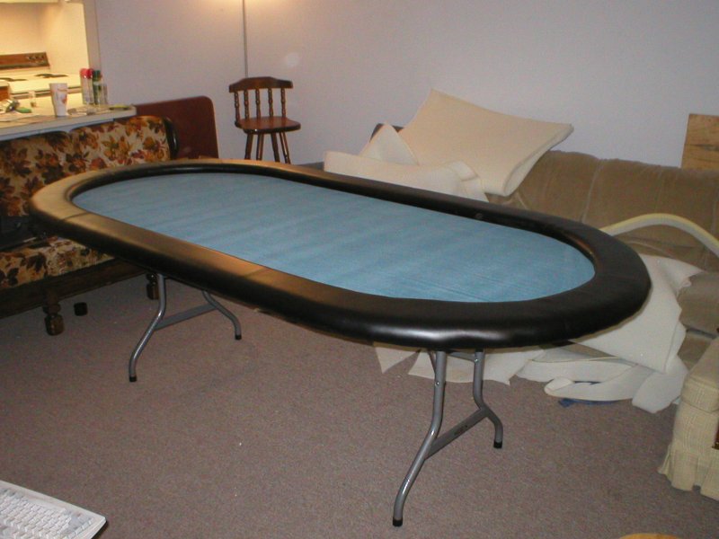 Sprayed standard 3M spray glue to table top and affixed 1/4" foam padding to table top.