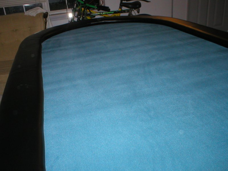 Stapled felt to the tabletop. No glue involved allows for refelting as needed.