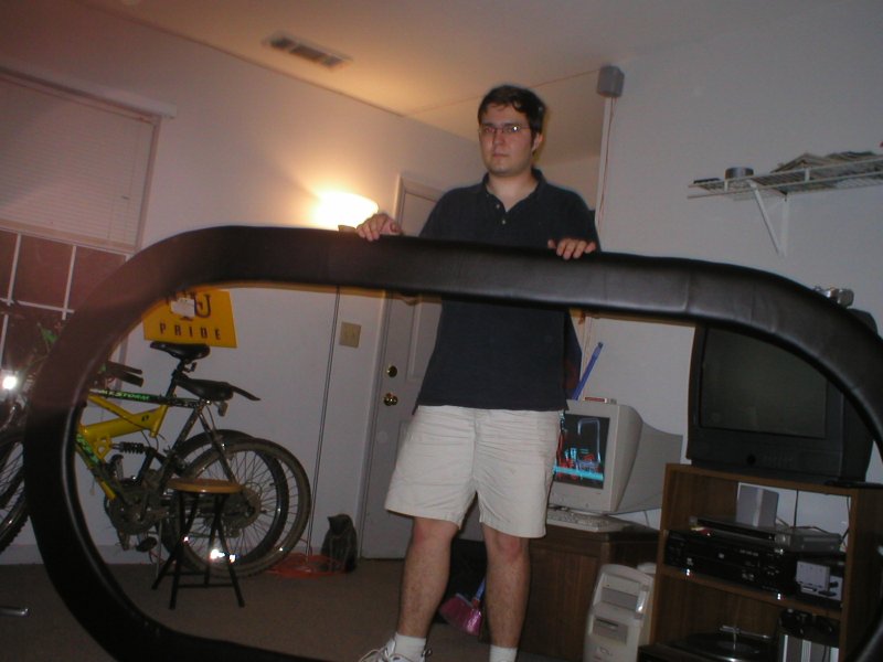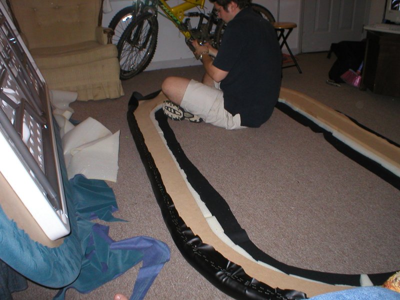 Stapled black vinyl around foam padding. Roughly 1200 staples holding the vinyl on. Overkill?? Nah...